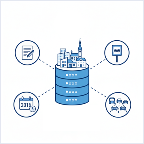 - Tallinna ja Harjumaa ühistranspordi andmed (nt ühistranspordi info, ühistranspordi peatused ja marsruudid, ühistranspordivahendite asukohad reaalajas);